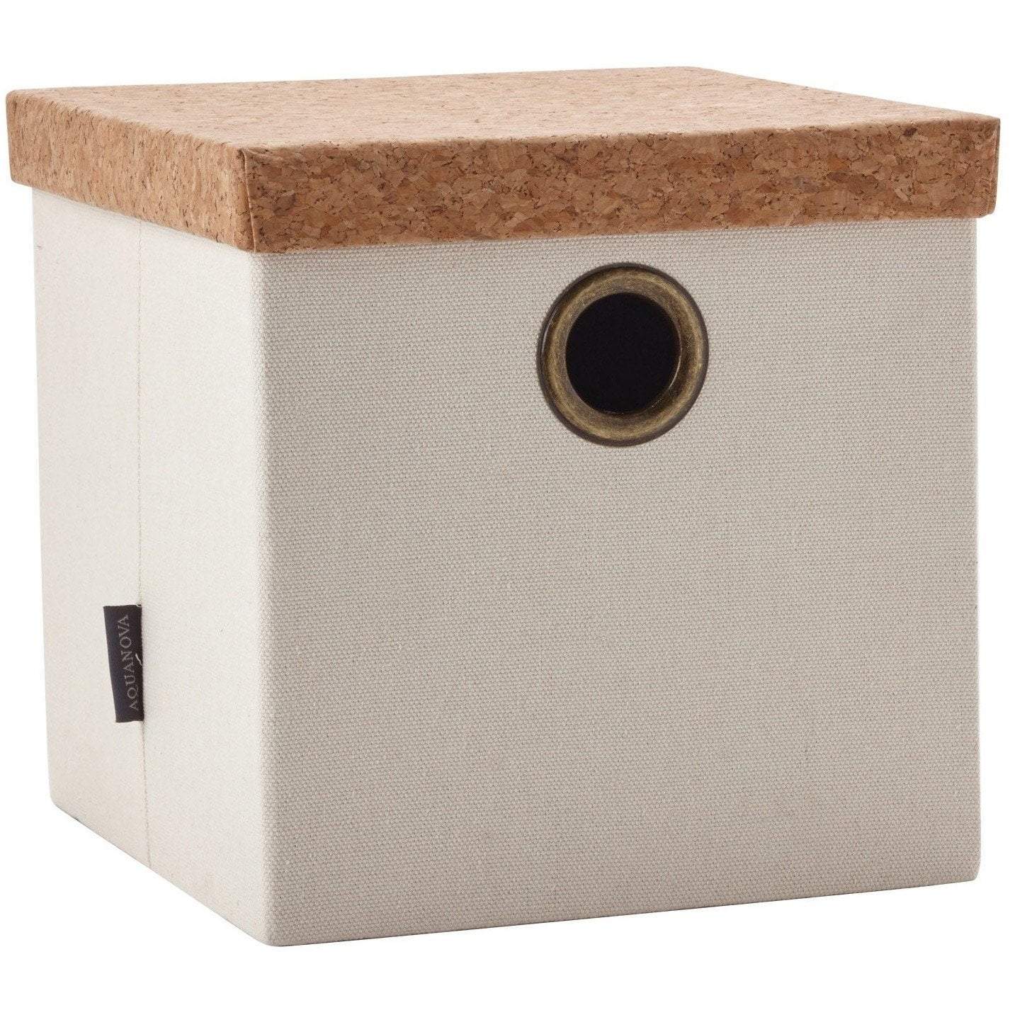 Arona Terylene, Cork Bath Storage Bin, Basket Organizer, with Lid and Handles. Cork is back! Neutral, natural with a little nod to the seventies. This natural product lends a stylish touch to the home. The same applies in the bathroom. Arona storage baskets have a simple appearance. A straightforward design and therefore perfect for tidying anything away. These baskets have a hard, tough ???????cotton look???????? exterior and can easily be folded up and stored when not in use. Matching the rest of the Arona series, the bottom of the storage baskets as well as the lid are made of cork. In addition, they are finished off with bronze -coloured rings on each side.